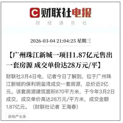 3 月初,广州星河湾半岛五號出现史诗级成交,三位金融圈大佬一次性砸下 7.187亿,横扫4套顶奢复式,单套总价最高突破2亿。