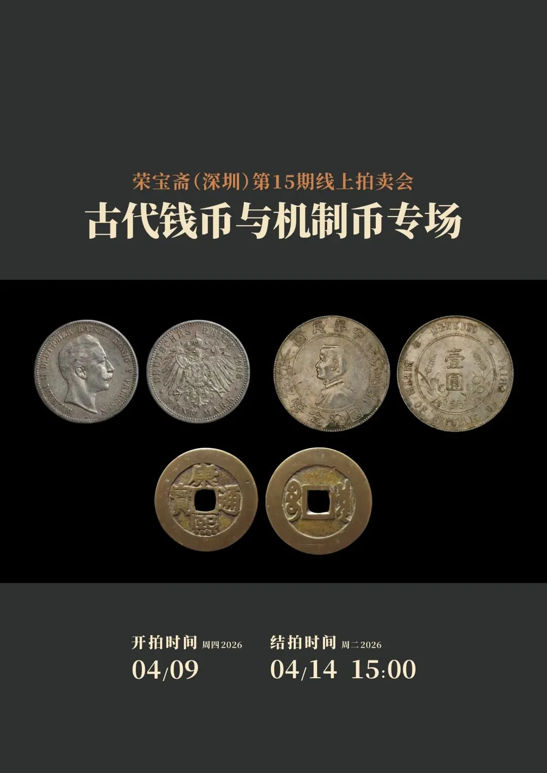 古代钱币与机制币专场,4月14日15:00次第结拍。本次专场涵盖机制币,古代钱币和外国钱币共68件。