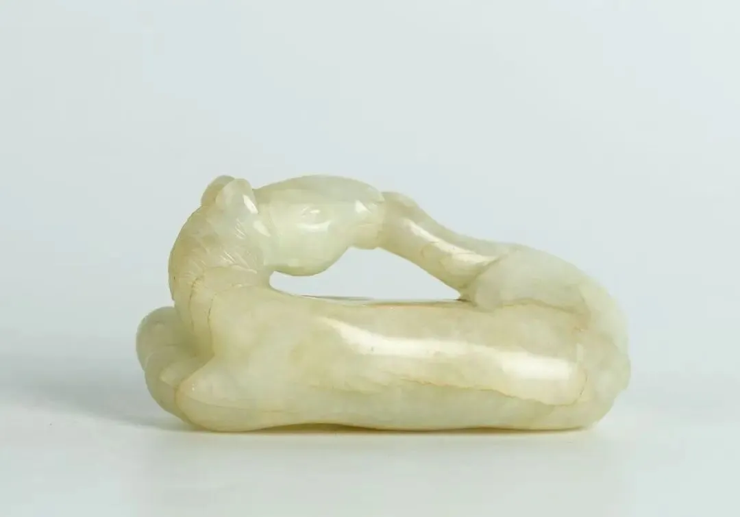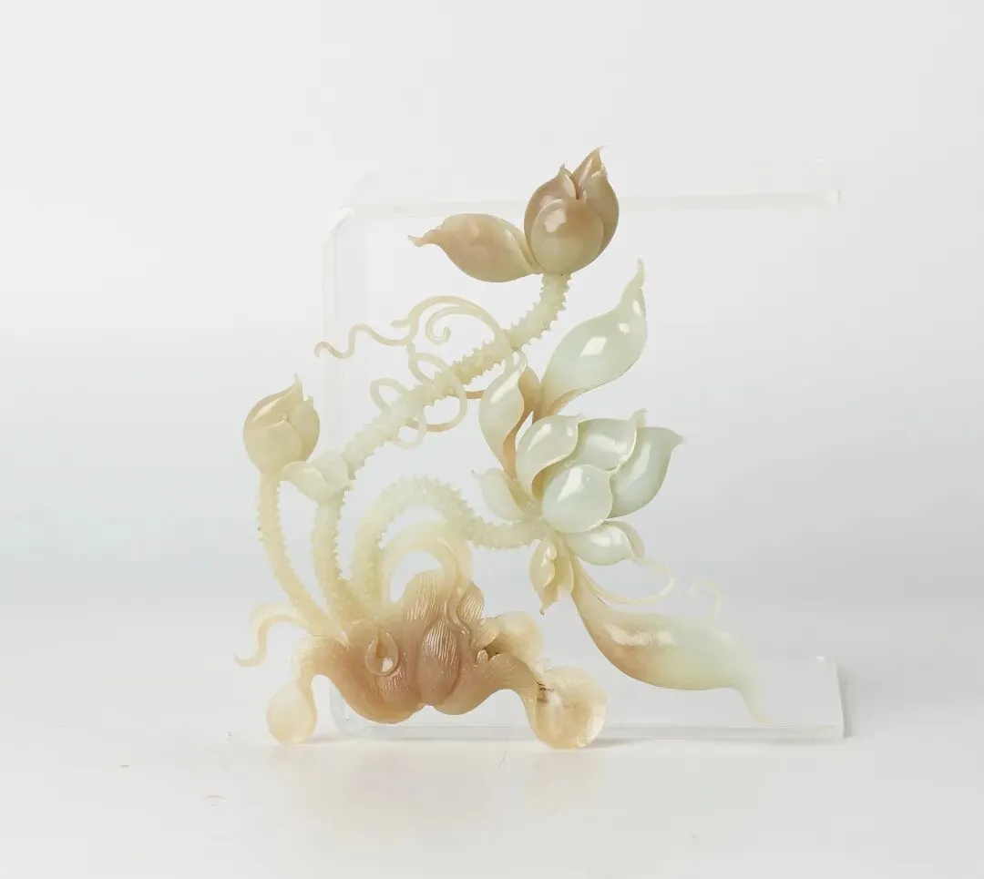 Lot 144 和田玉双面雕“一把青莲"摆件