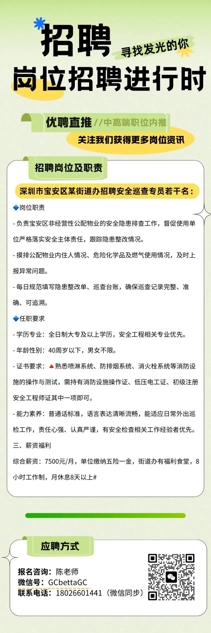 >深圳招聘|深圳市宝安区某街道办招聘(安全巡查专员)