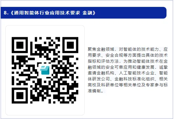 中国电子商会人工智能专业委员会目前牵头组织八项团体标准的制定工作,致力于为行业发展提供规范指引。这些标准覆盖人工智能、大数据、智能体、金融科技、自动驾驶、智能制造等关键领域。相关标准项目主题如下,您可结合自身需求选择参与一项或多项标准的制定工作: