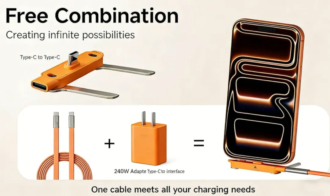 产品通过将支架结构嵌入到连接器内部,并实现可收纳与展开的双状态切换,使产品在充电功能之外,具备稳定支撑手机的能力。