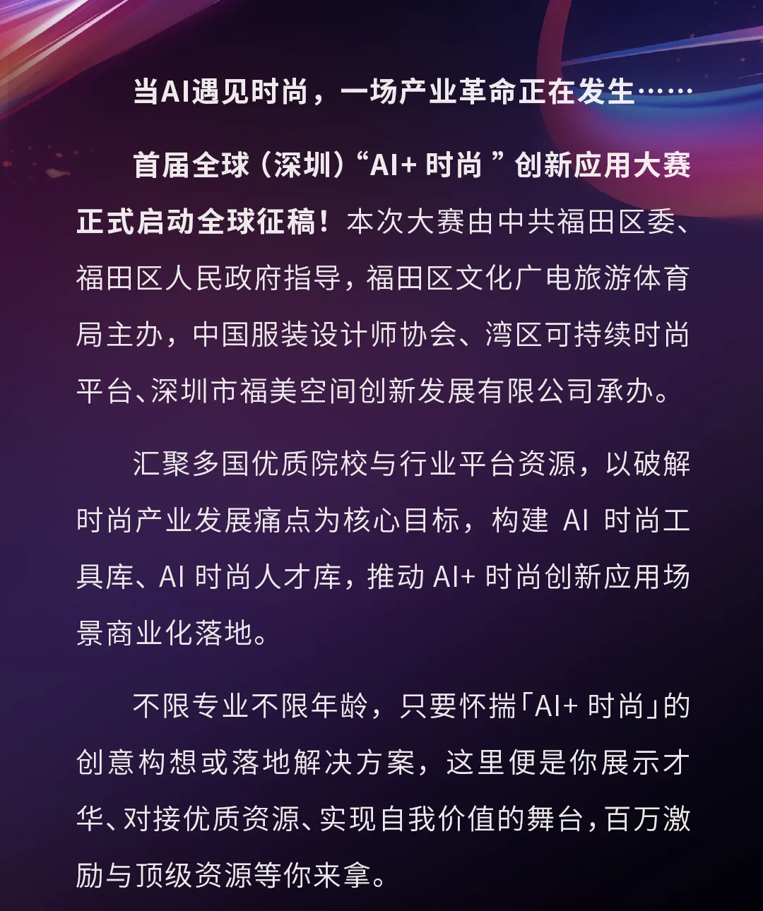 >百万激励,全球征集!首届全球(深圳)“AI+时尚”创新应用大赛邀你参赛