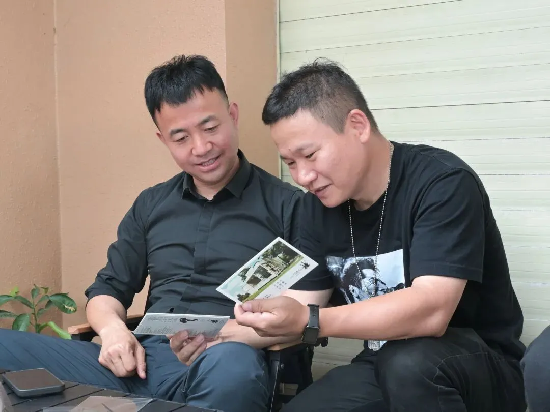 陶文俊(右)将自己设计的文创品赠与观众。“这棵古樟树的树围达11米,在我的眼中,它仿佛凝聚了千年的灵气。”陶文俊与大树朝夕相处,除了“相看两不厌”的守护,他对小鳌溪村的历史文化也愈发着迷。“这里可谓是音乐之乡,走出了一代小提琴名家林宜弩先生,他是约阿希姆小提琴学派的传人,中央音乐学院的教材也是他编的。他的儿子林友声是国家一级指挥、上海歌剧院指挥。林宜弩的学生林朝阳是中央音乐学院教授、著名影视音乐作曲家。”如今的陶文俊,对当地的名人乡贤如数家珍。出于对艺术的热爱,他一直希望为村里引入更多的文化资源。终于,“古樟树下办音乐会”的灵感种子在这个春天破土发芽,并得到了一群朋友的大力支持。