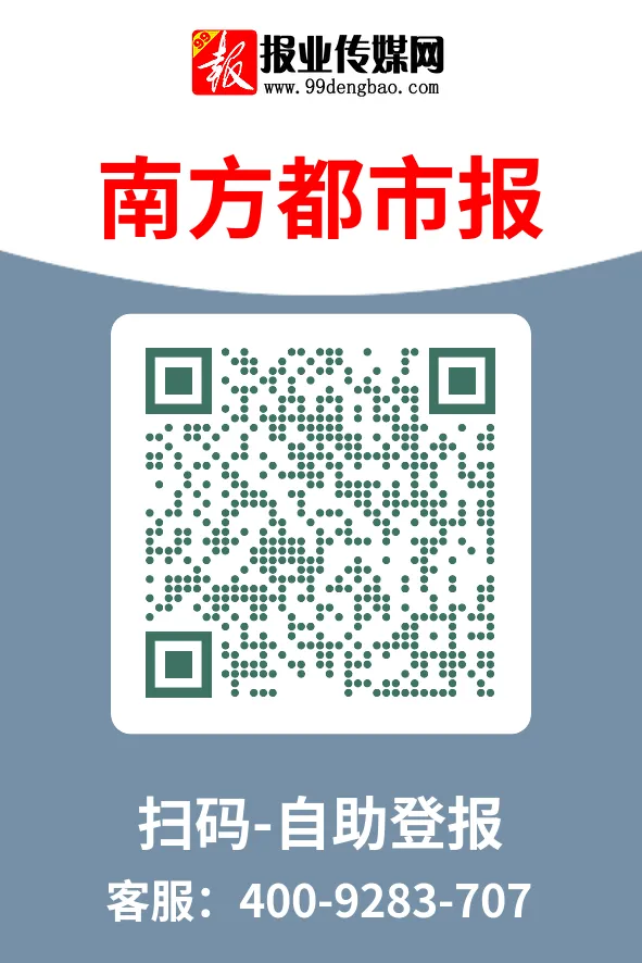 办理方式便捷高效,无需奔波,只需扫码或长按识别二维码,即可进入自助平台全流程在线操作。南方都市报以权威平台、广泛覆盖和优质服务,确保您的每一次登报都真实有效。选择南方都市报,就是选择专业与放心,让您的重要信息第一时间触达全城。