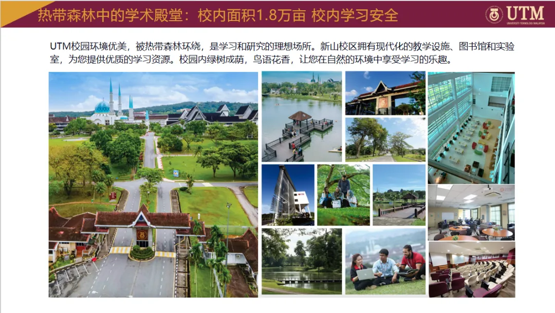 马来西亚理工大学(Universiti Teknologi Malaysia,简称UTM)创立于1904年,作为马来西亚历史最悠久、规模最大的皇家公立理工大学,UTM始终以“工程科技”为立校之本,人工智能、绿色技术、土木工程等多个专业位列全球百强。