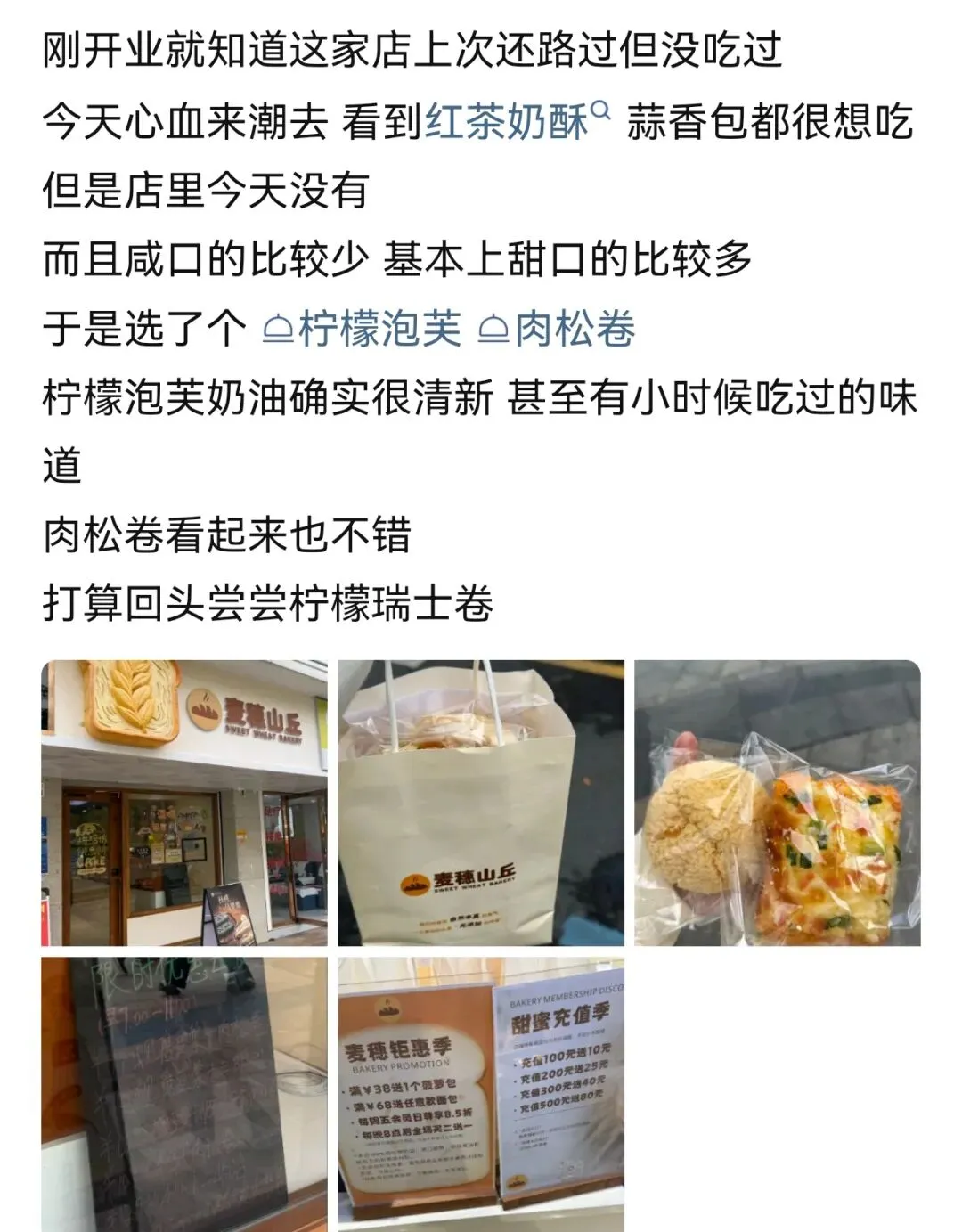 据悉,吴女士是一名“90后”二胎宝妈,此前从事外贸工作,婚后在深圳盐田定居。去年10月,“麦穗山丘”在海山地铁口附近开了张。店主吴女士作为两个孩子的母亲,她对面包品质有执念:面粉、牛奶、黄油和动物奶油等原料都是进口食材,无额外添加,所有面包当日现烤,绝不隔夜。但她的定价却很“实在”,单品价格多在6至16元之间。这份初心和实在,攒下了一批忠实的“老粉”。