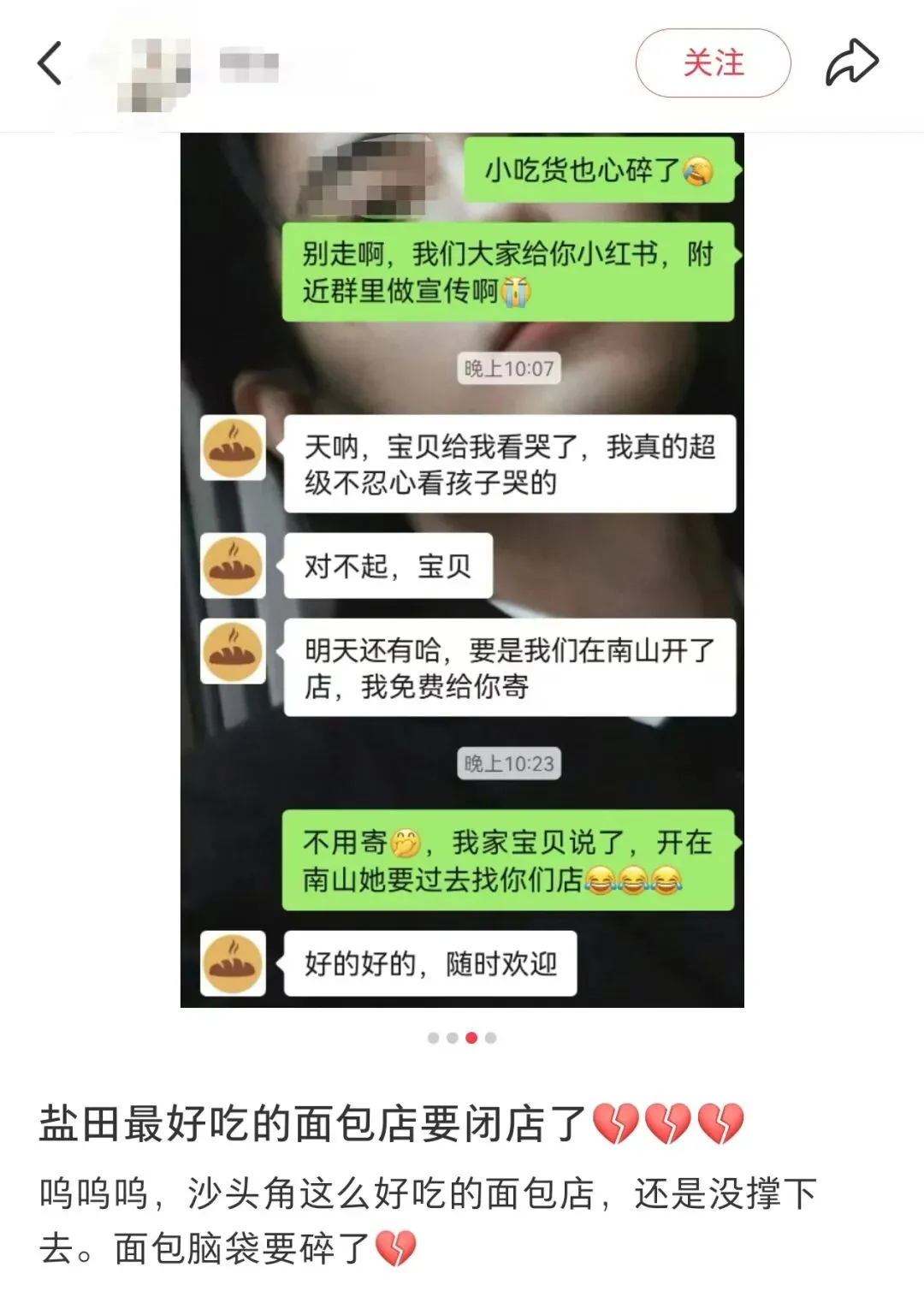 “闭店通知”首先在熟客中掀起了波澜。有网友在社交平台上写了一条帖子,标题写着:“盐田最好的面包店要关店了”。