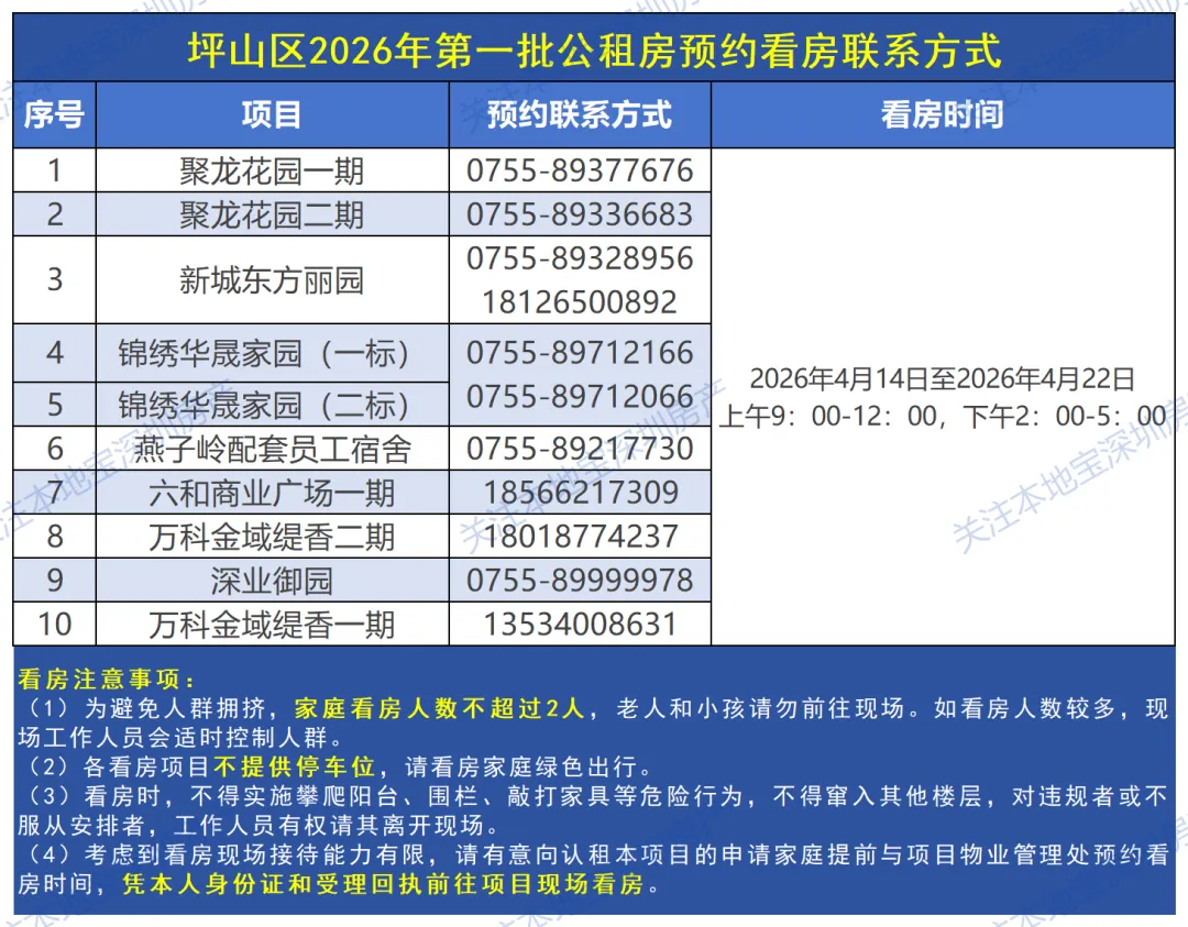 1️⃣2026年4月13日(含本日)18:00前属于坪山区户籍,且同时在深圳市保障性住房统一轮候系统登记为坪山区户籍的公租房在册轮候人。