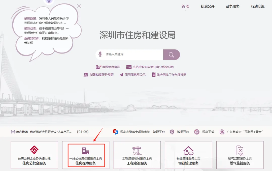 ⭕符合认租条件并且有意认租本次公共租赁住房的坪山区在册轮候家庭,进入深圳市住房和建设局官网,进入【住房保障服务】页面