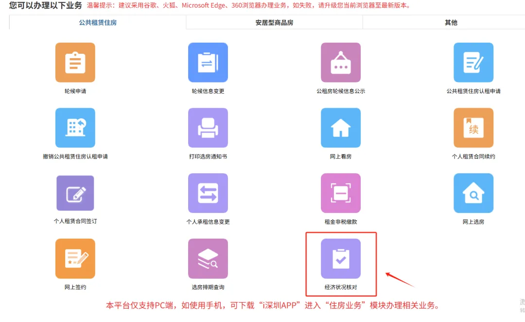 ⭕经济状况核对已转为常态化受理,在册轮候家庭日常如需申请经济状况核对,请访问深圳市住房和建设局官方网站,进入“住房保障服务”栏目,在“住房保障个人服务窗口”登录后,点击“经济状况核对”,线上提出经济状况核对申请。