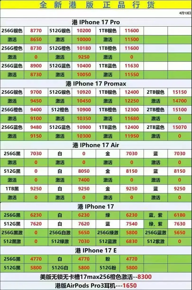 当前位置:首页>深圳>深圳2026.4.13日全新正品苹果三星水货官换机等报价