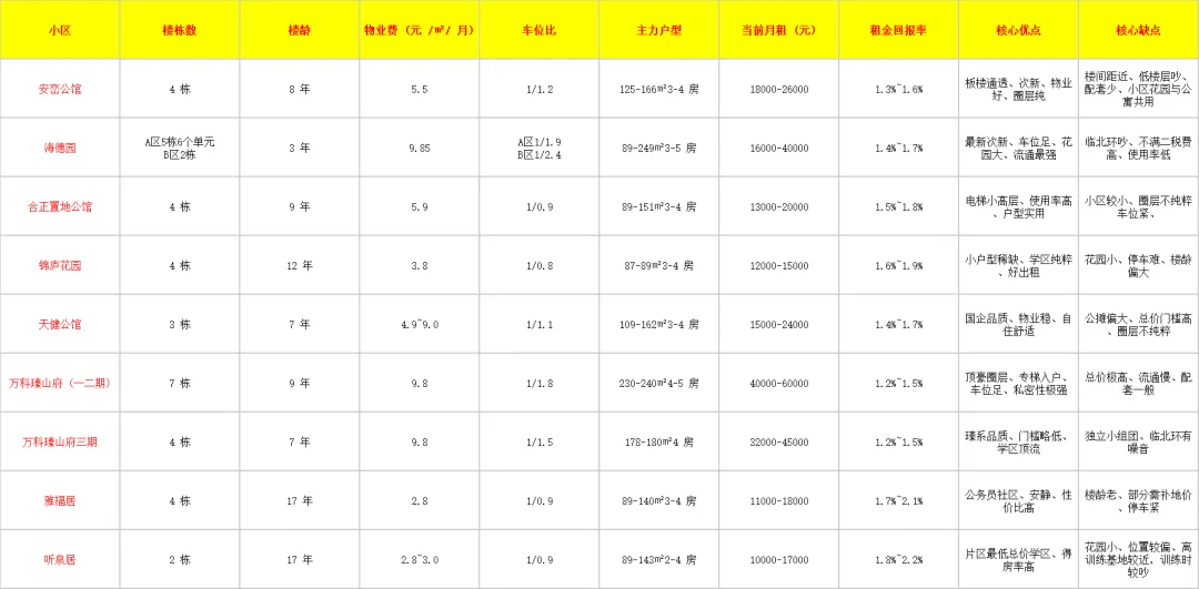 ·避坑点:楼龄超 15 年,户型设计过时,部分房源不通透,暗卫占比高;部分房源有产权限制,交易需补地价;车位比不足 1:1,停车紧张。