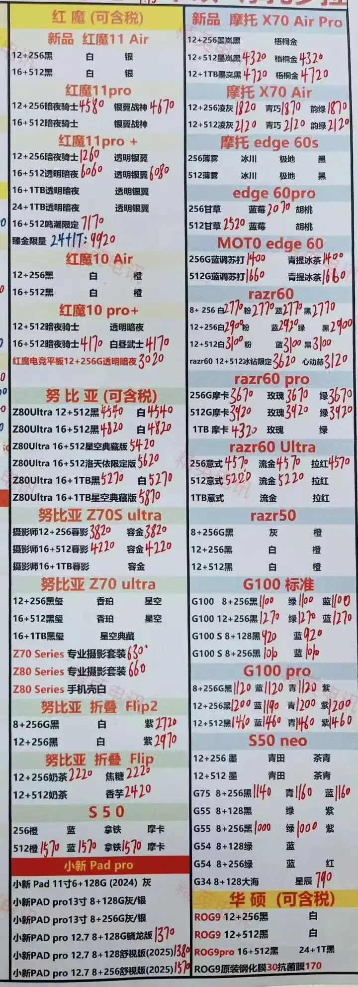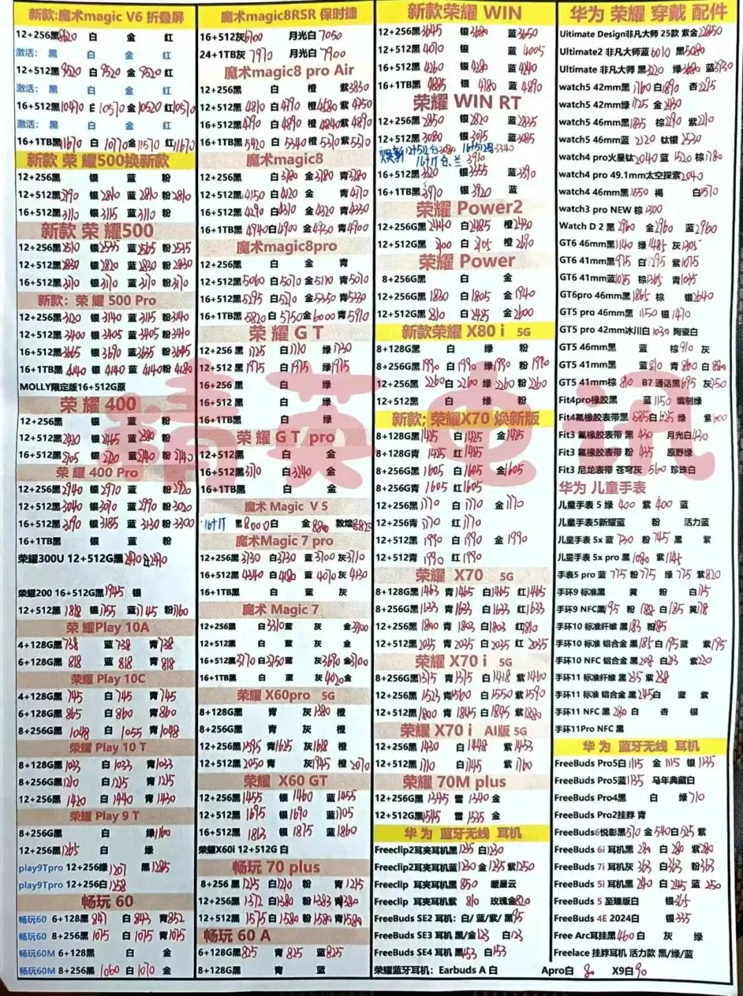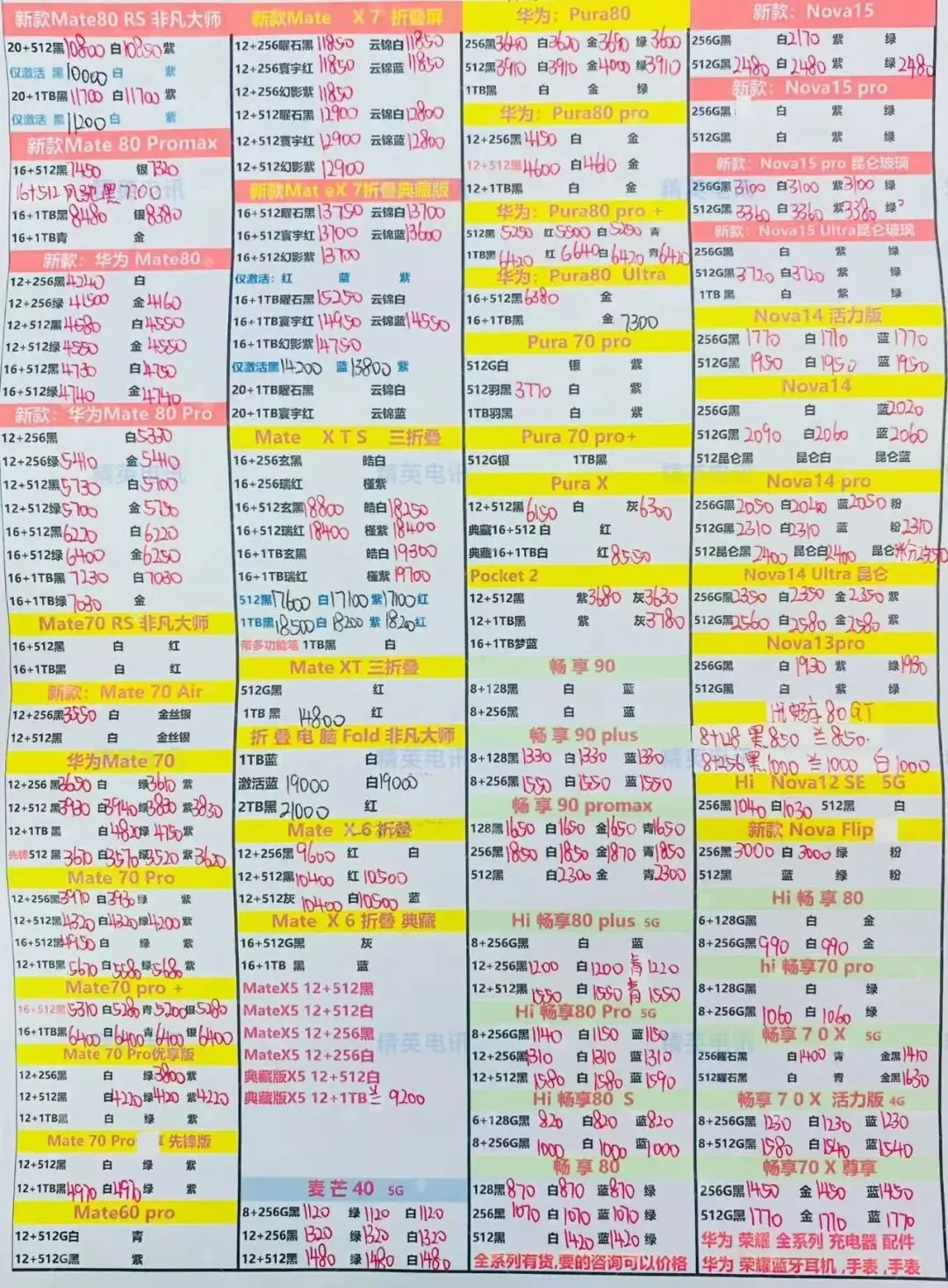 最新全新原封国行华为荣耀小米一加红魔等手机批发报价