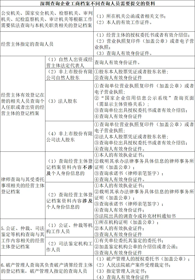 对于不同查询人员需要提交的资料如下: