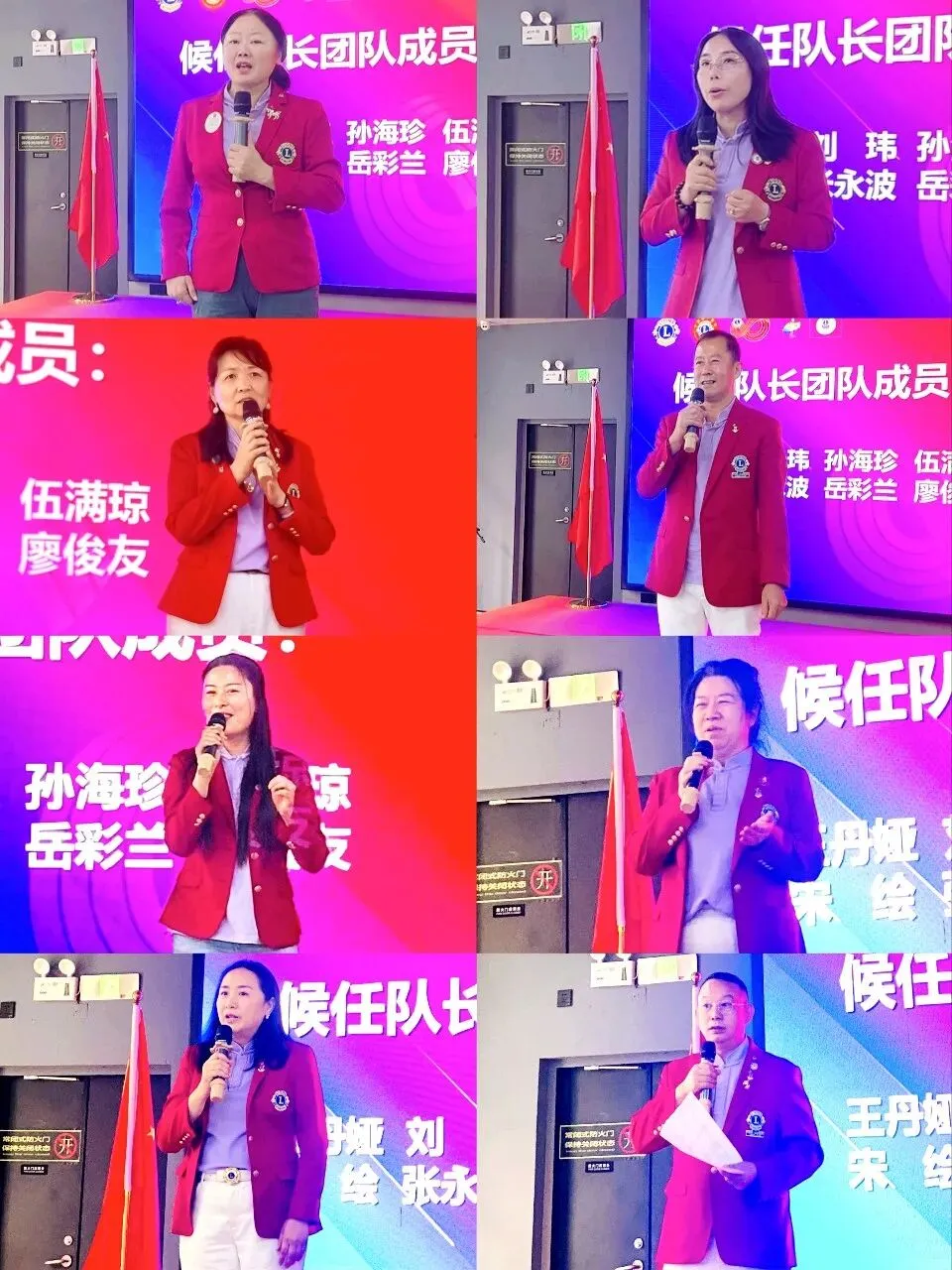 王丹娅狮姐、刘玮狮姐、孙海珍狮姐、伍满琼狮姐、宋绘狮姐、张永波狮兄、岳彩兰狮姐、廖俊友狮兄等一众队长团队候选人依次登台竞选演讲,立足公益初心,畅谈服务思路与责任担当,展现履职决心,赢得现场狮友热烈掌声。