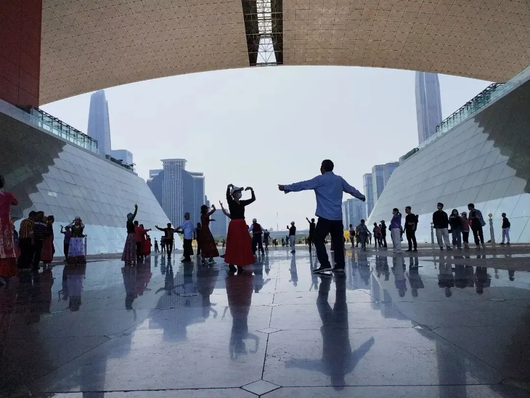 尤其是市民中心那段镂空的走廊,一到周末,会有不少来此习舞练嗓的老人或青年,市民游玩闲逛,五颜六色的身影和各地方言交融重叠,晕染出了这个城市的包容之美。