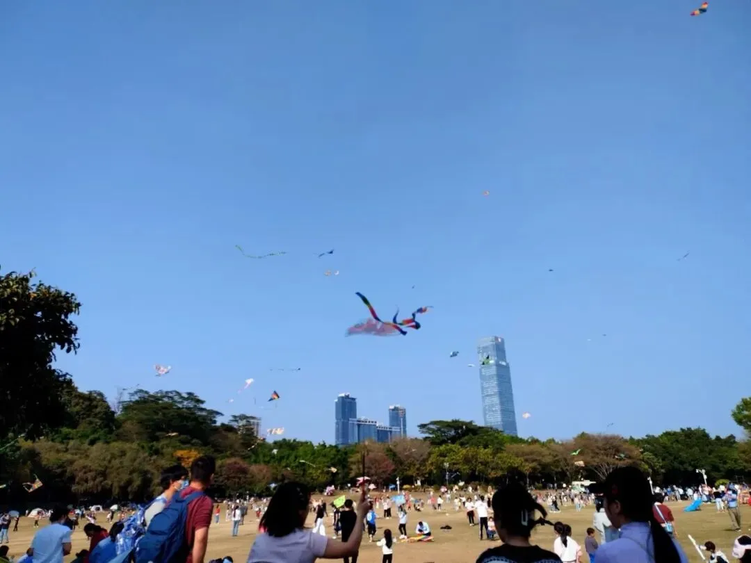 市民在树下玩耍嬉闹乘凉,只要是阳光明媚的日子,这里就是其乐融融的画面。草地上放风筝的大人小孩,年少如风,使劲拽着飘荡在空中的线,生怕一松手童年就丢了。