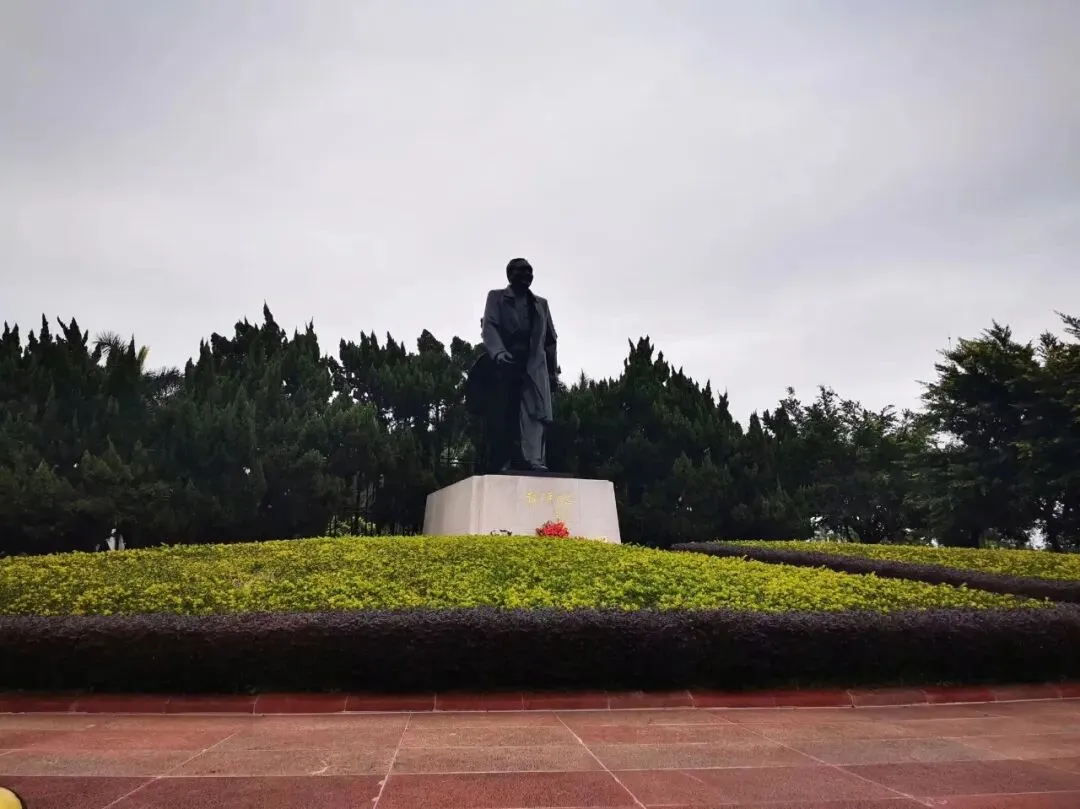 莲花山不高,不管是走山中台阶或是缓坡平路,左右半个小时就到山顶了。山顶是个圆形设计,中央矗立着大步流星的邓爷爷雕像。