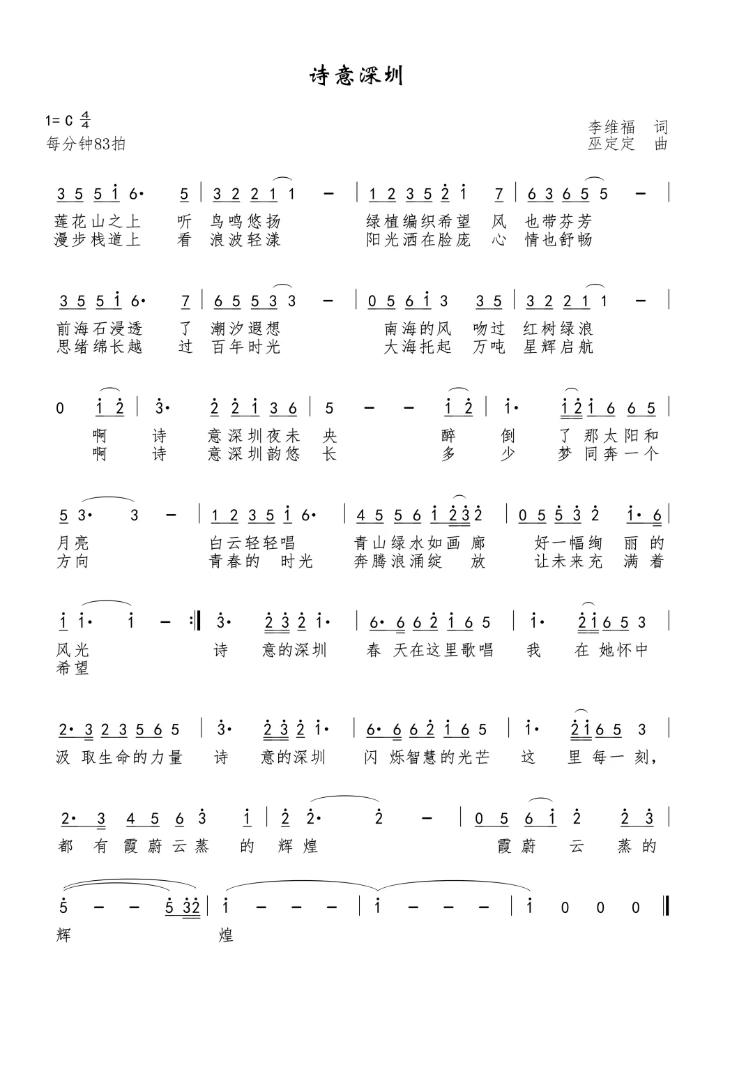 旋律抒情流畅,大气磅礴间饱含人间温度,是一曲献给深圳的深情礼赞。作品跳出传统城市主题曲的宏大叙事框架,以细腻体察与浪漫想象,挖掘深圳柔美且富有诗性的内在肌理,立体呈现传统底蕴与现代活力交织共生的独特城市气质。让人真切体悟到:深圳不只是逐梦奋斗的热土,更是安放诗意、栖息心灵的家园。
