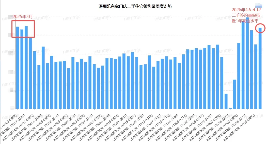 - 上周市场监测:机构数据显示,上周(4.6-4.12)二手住宅签约量环比大涨26%,持续维持近1年的高位水平。新房市场方面,龙华新房项目幸福城臻园加推小户型,再现数百人深夜排队现象,市场情绪显著升温。