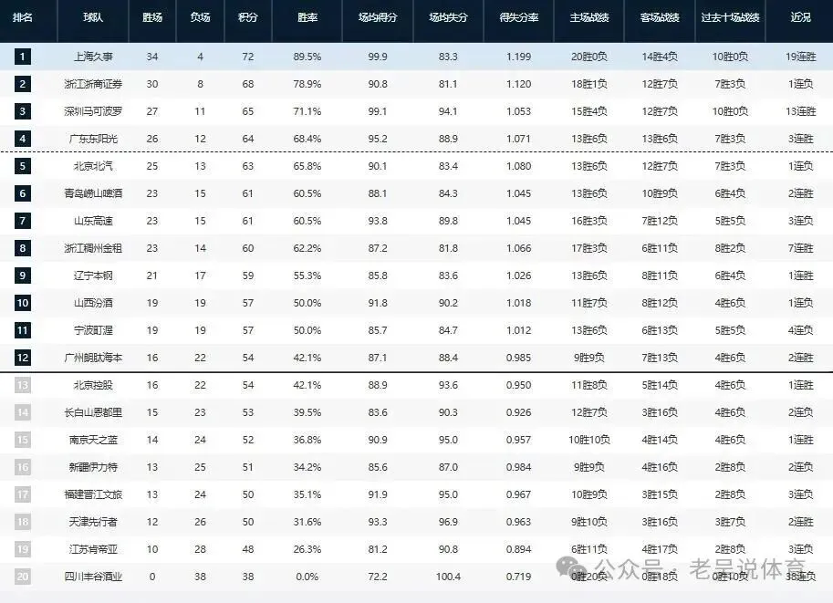 这场比赛之前,山东23胜14负排第7,辽宁20胜17负排第9。两队只差3个胜场,这是一场真正的卡位战。