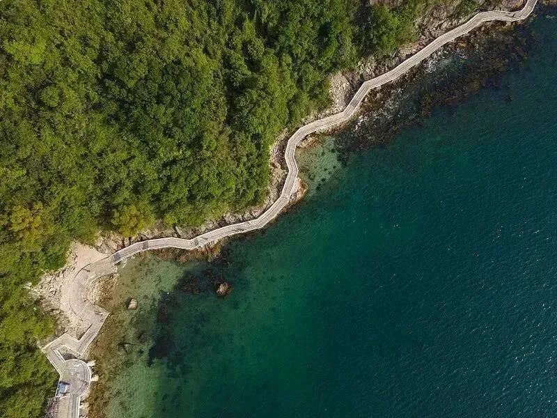 你可以选择与“果冻蓝”般的海,来个亲密接触栈道延伸,令你恍若置身其中。