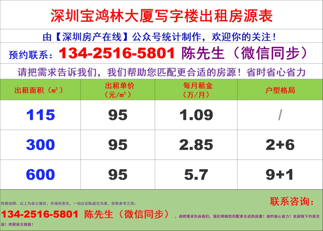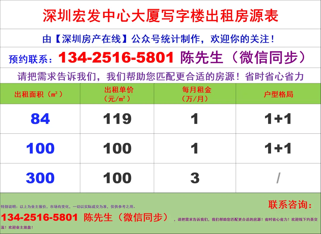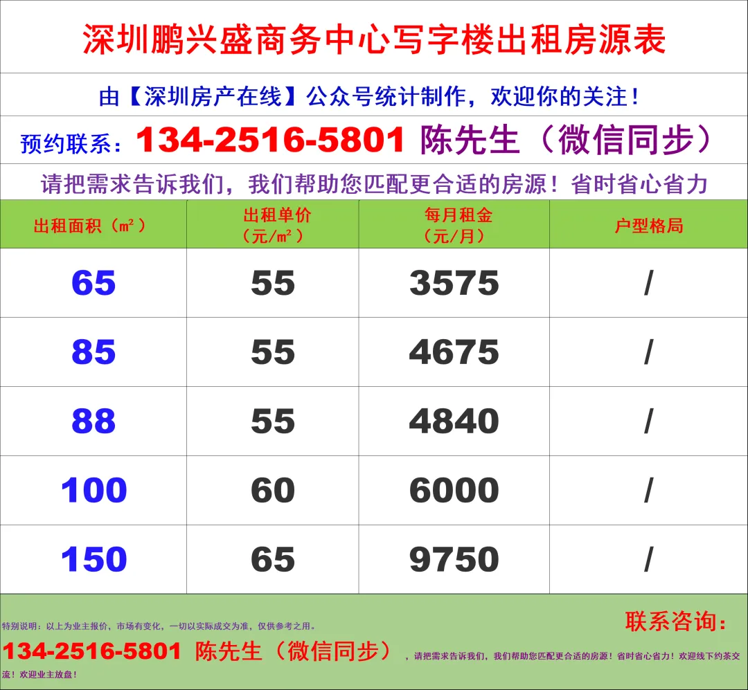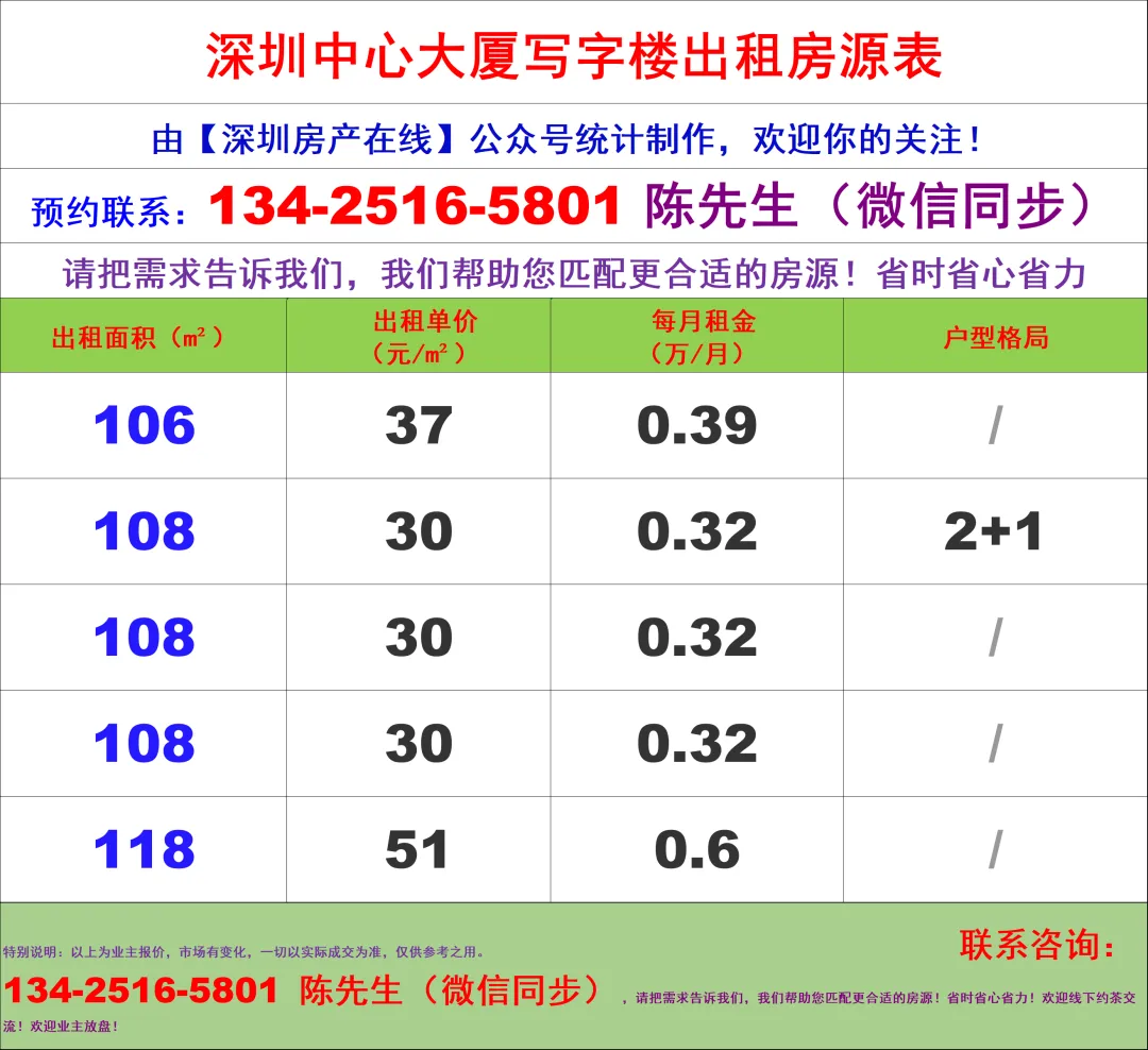 【深圳房产在线】陈经理写字楼租售团队:134-2516-5801 (微信同步)