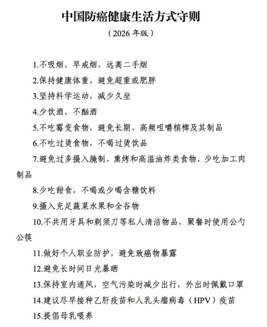 4月15日—21日是第32个全国肿瘤防治宣传周。近日,国家卫生健康委发布了《中国防癌健康生活方式守则》,15条防癌法则,覆盖生活方方面面。