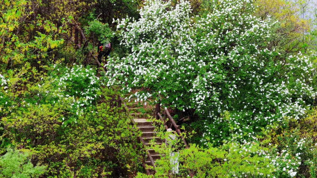 连日来,西安翠华山红柄白鹃梅迎来盛花期,清雅花海与苍翠青山相映成趣,春日氛围感拉满,微风拂过花影摇曳,幽香萦绕山间,与天池碧波、山崩奇石勾勒出绝美春日画卷。(文/图 记者 李明)