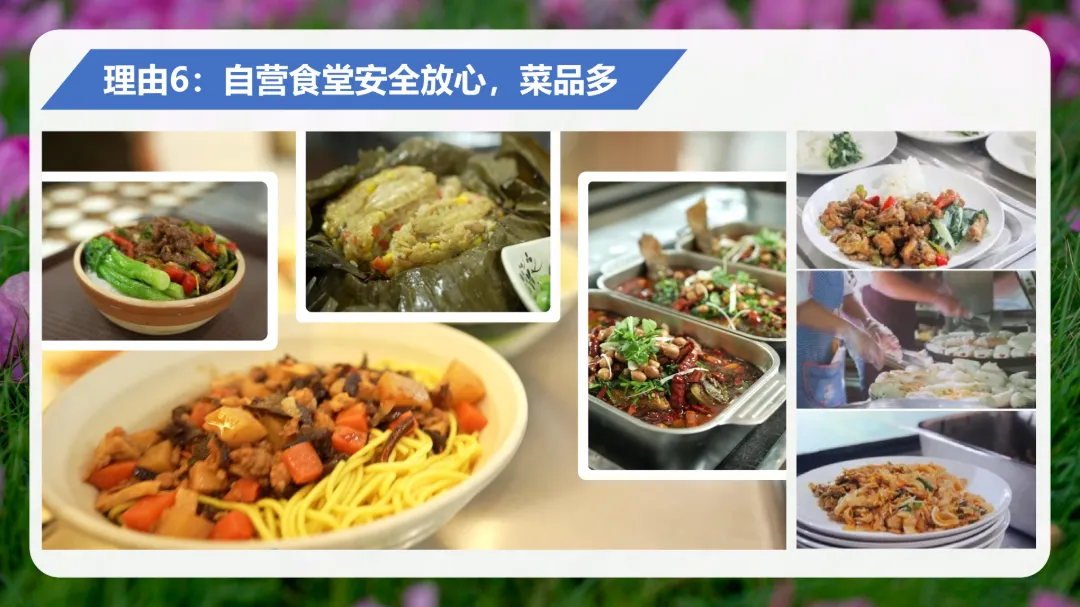 自营食堂,是广东省食品安全示范学校食堂、深圳市A级食堂,采用网上预约订餐服务系统,可容纳3000名学生就餐,菜品种美丰富,自选套餐、南北风味、中西点心等。纯素菜2元,纯荤菜/荤素混合4-10元,套餐价格10-20元,面基本是8元一碗等等。