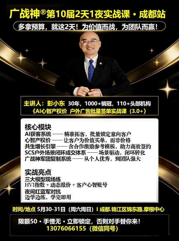 主讲:彭小东《AI心智产权价·户外广告批量签单实战课(3.0+)》