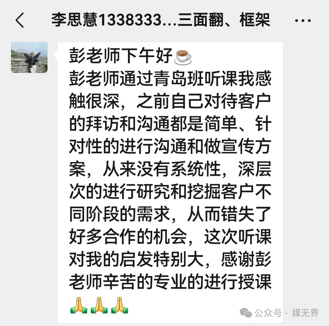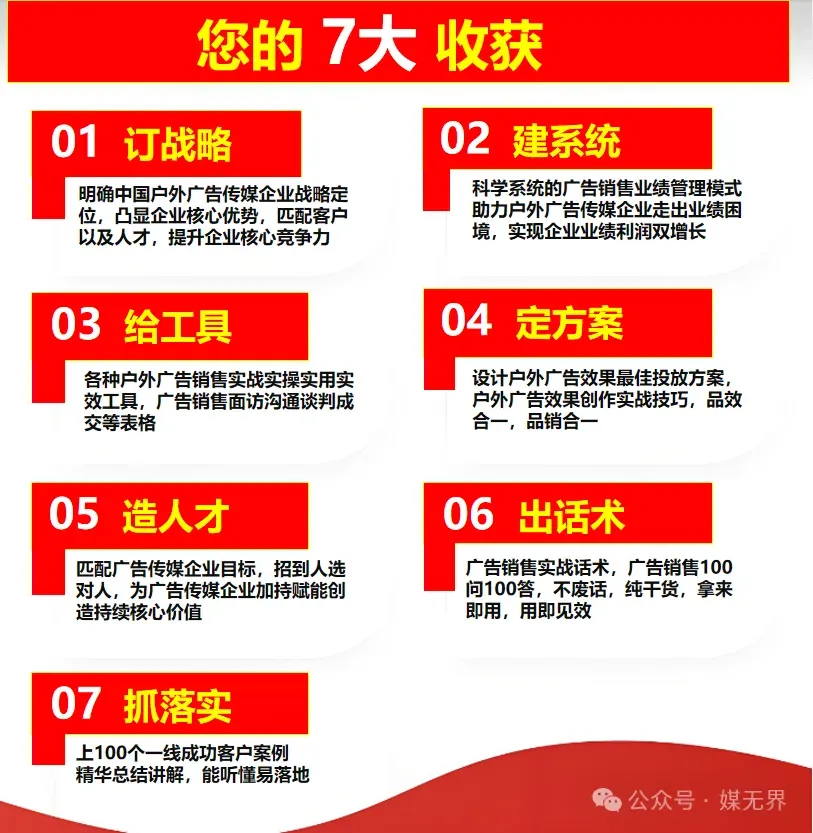 ✅ AI获客——锁定30+高潜客户,告别盲目打电话✅ 心智产权价——让媒体价值看得见,终结“还能便宜吗”✅ 对赌协议——客户从砍价变追单,续约率85%✅ SCS闭环——提案用ROI说话,一次面谈签年框✅ 军团复制——30天孵化新人,销冠批量生产