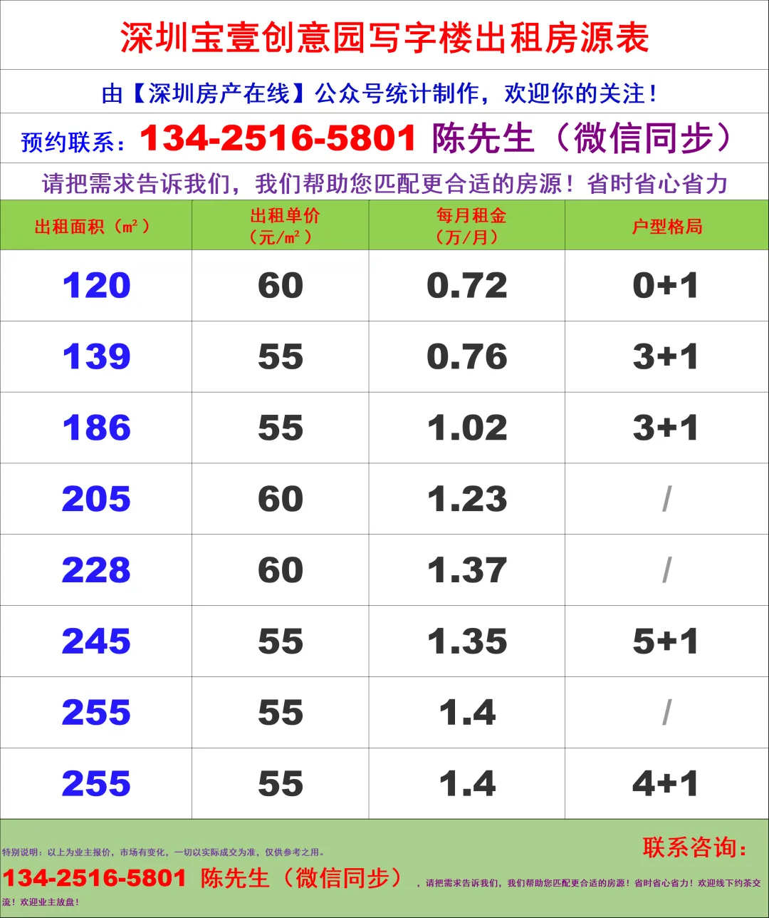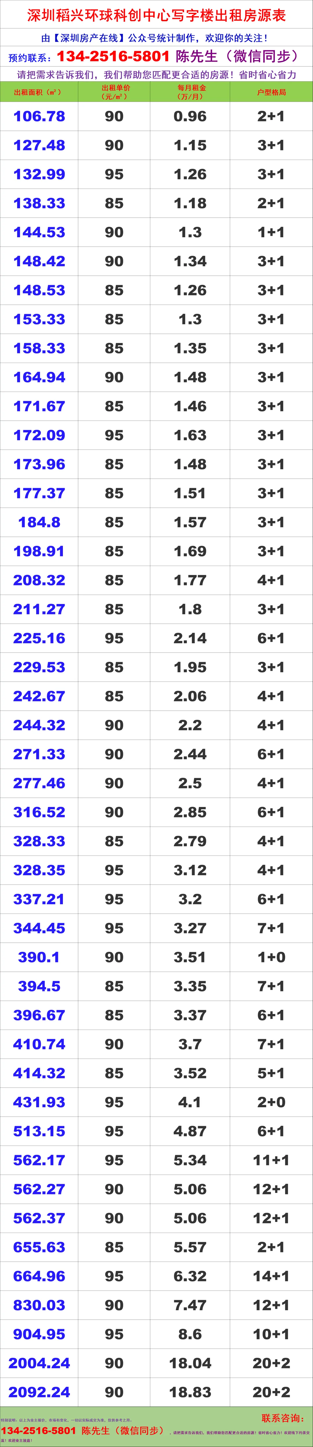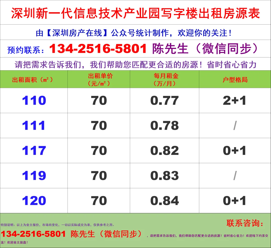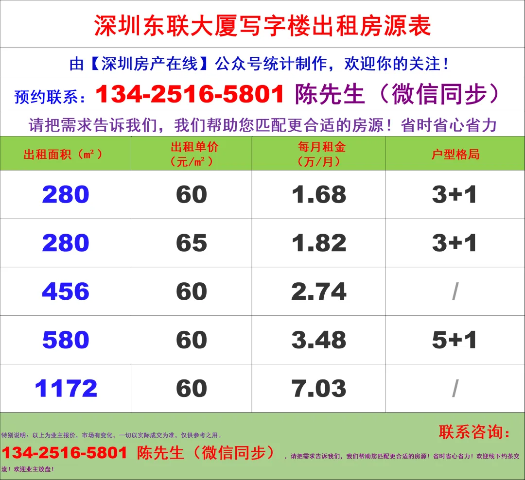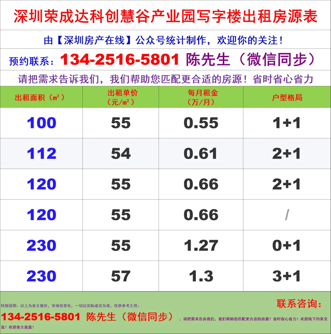 【深圳房产在线】陈经理写字楼租售团队:134-2516-5801 (微信同步)