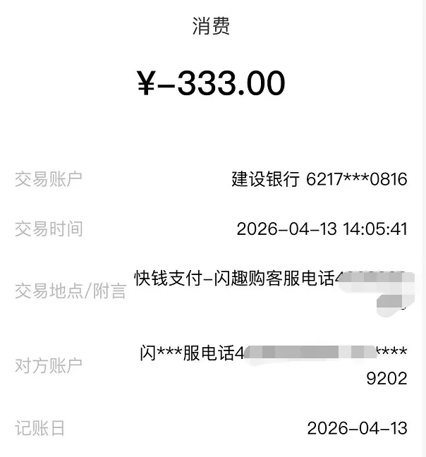 深圳市煜钥科技【闪趣购】扣费333元,要扣3个月;很多人不清楚如何解决,和之前的泉易通【河南千犀信】扣费情况类似的。