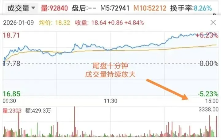 成交量上,拒绝缩量上涨、放量下跌的畸形形态,优选近期量能有序放大、尾盘持续堆量的股票。同时查看分时图,个股全天运行在均价线上方,尾盘小幅拉升无砸盘,说明主力控盘稳健,次日上涨确定性极高。