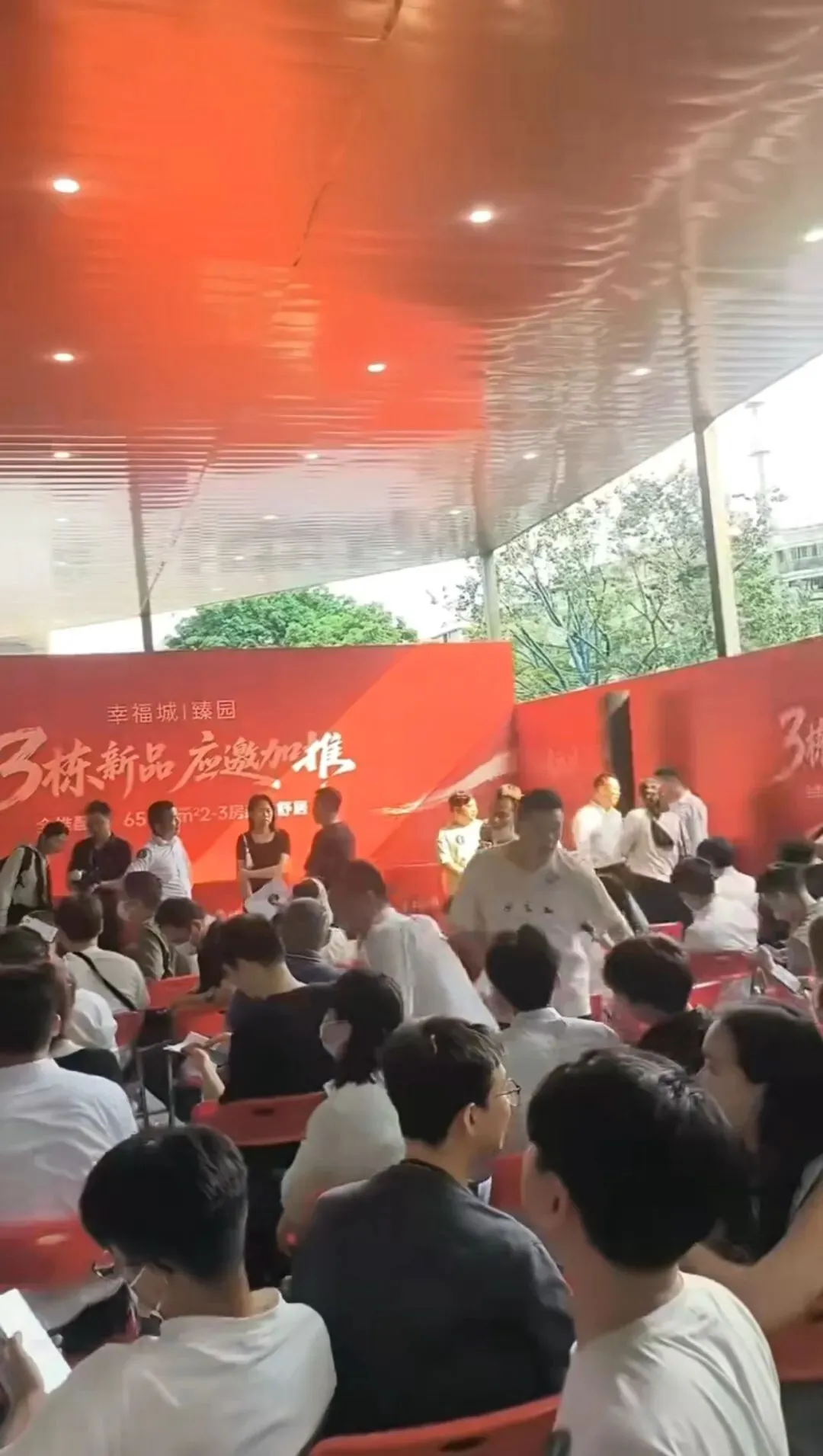 位于龙华的幸福城臻园项目,尚未正式开盘,却已在深夜排起了长队。人群越聚越多,焦虑与躁动在夜色中蔓延。终于,秩序失控,保安无奈动用辣椒水驱离插队者。