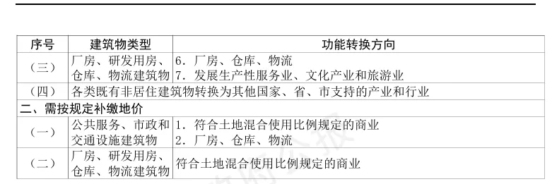 - 厂房、研发用房、仓库、物流:比如旧厂房,可改成社区医院、科研实验室,也能继续做厂房、物流,还能发展文化产业、旅游业。