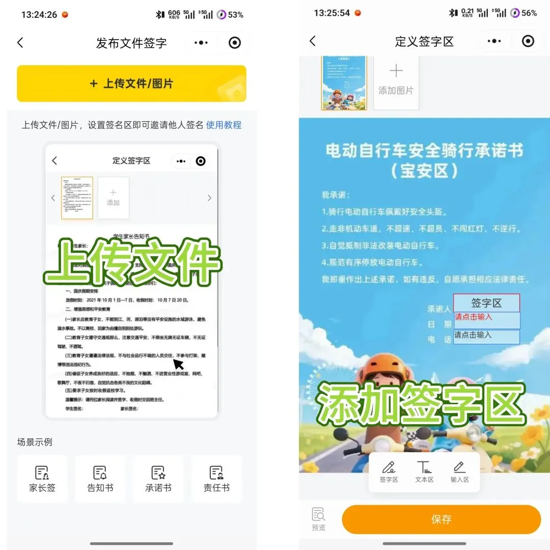 设置签字区:你可以在文件上自己划签字的地方(居民手写签名的区域)、需要填文字的文本区,还有姓名、房号这类信息的输入区;