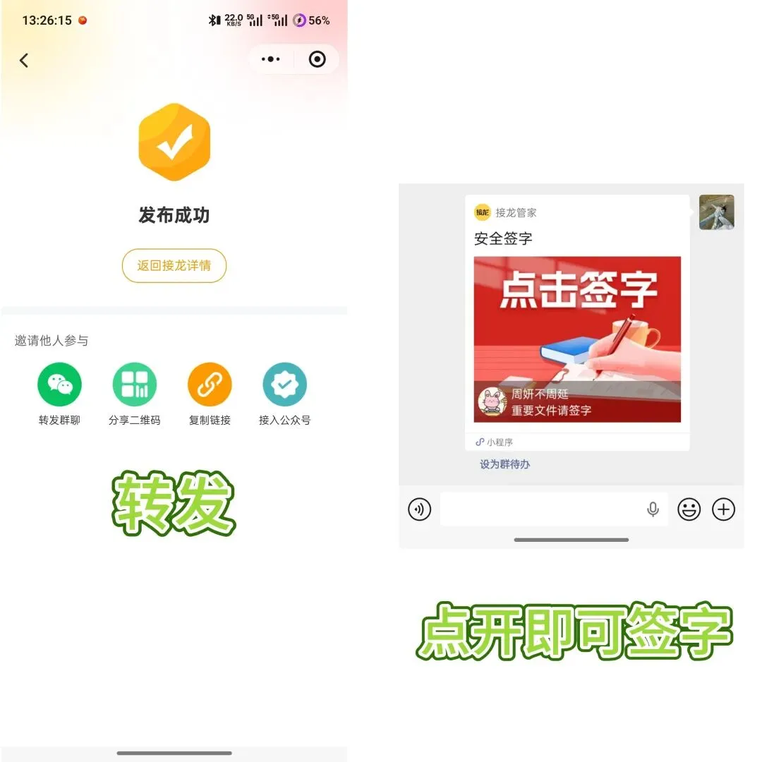 分享到居民群:生成签字链接后,直接转发到业主群或居民群;