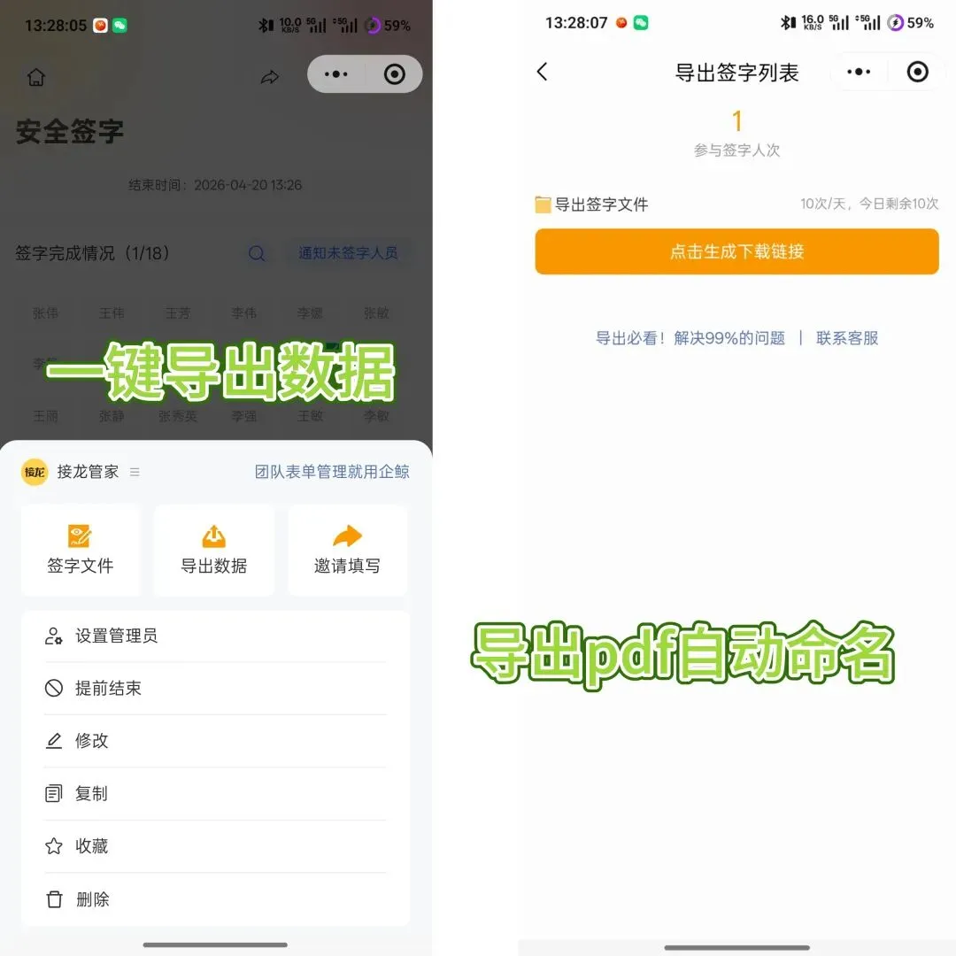可传统签字方式真的太折腾:打印上百份文件,挨家挨户敲门,等居民排队签字,最后还得一张张整理归档 —— 居民没空,你跑断腿,签字页还容易弄丢。其实啊,用接龙管家的文件签字功能,手机上就能在线签名,批量收集居民签字,1 分钟就能搞定!