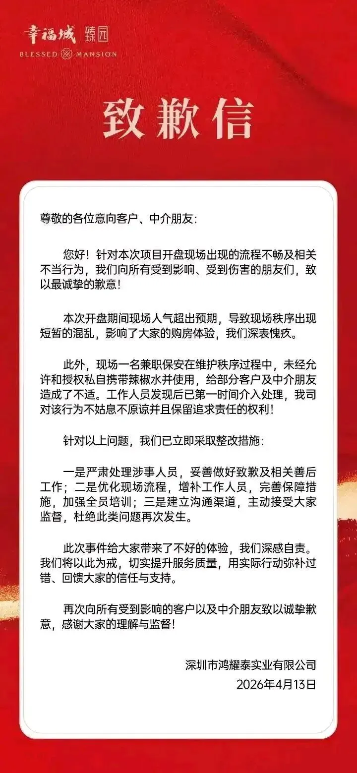 开发商随后致歉,称该行为未经公司授权,涉事人员已严肃处理。