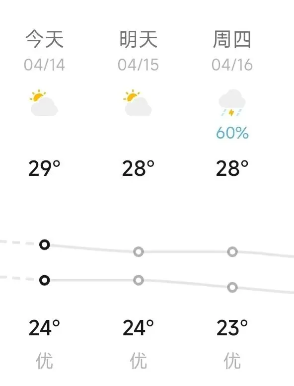 早晚有轻雾,午间较热