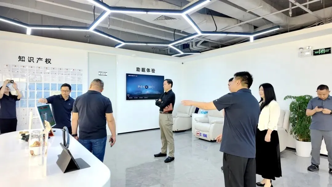 调研期间,王立平会长对助眠仪产品表现出浓厚兴趣,并就其背后的技术原理与马总展开了简短而专业的技术探讨;虽是寥寥数语,却折射出鹏脑科技在产品底层逻辑上的扎实思考,为后续的思维碰撞提供了扎实的基础。