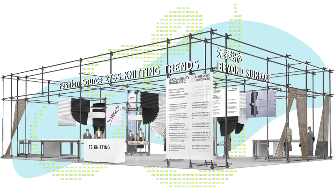 2027SS针织趋势区「无界织态」携手法国设计大奖团队,跨界打造家居装置空间,借空间叙事拓展针织表达边界。同时,集中展示“气之为材”等四大主题,从材料到结构层层剖析,直指产品开发路径,让针织趋势摆脱空泛,具备切实可落地的转化能力,为行业发展带来新思路。