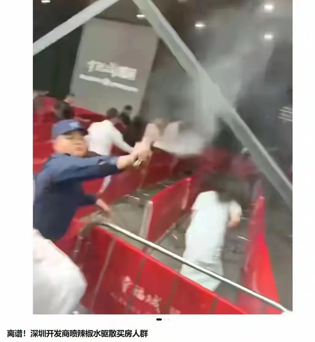 几百人连夜排队抢房,人挤人乱作一团,保安直接掏出辣椒水往人群里喷,购房者被呛得咳嗽流泪、四处逃窜,场面混乱到失控。