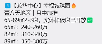 翻译过来就是在龙华中心区---用一个从来没有过的低门槛,击穿片区下限,直达刚需的心灵。