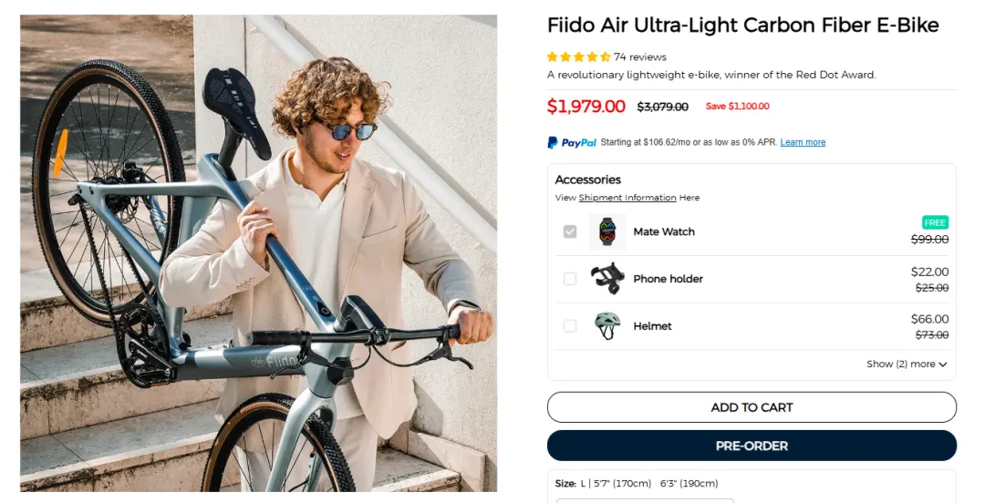 同时向上延伸至 1979 美元的碳纤维轻量化车型 Fiido Air,既覆盖了预算敏感型用户,也满足了追求品质与设计的中高端消费群体,避免了在单一低价带的恶性竞争。