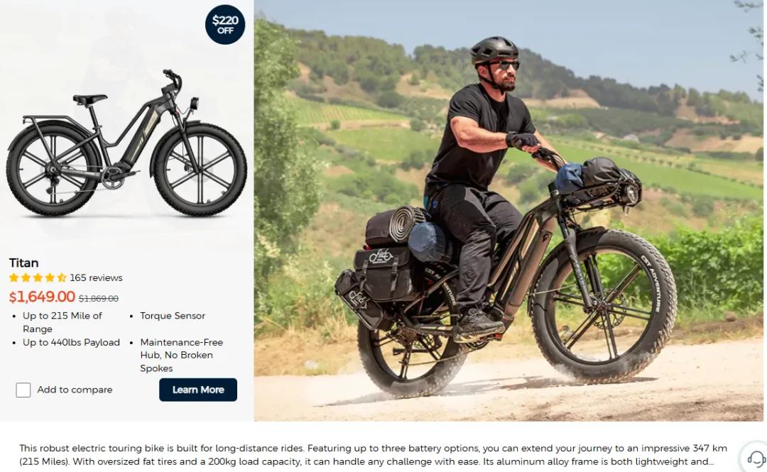 2017 年成立至今,无传统行业根基的它,2023 年营收破 1 亿美元,服务全球 60 万 + 骑行者,覆盖 100 + 国家地区;独立站 30% 流量来自直接访问,Trustpilot 超 4600 条评价稳居 4 星,彻底打破了海外市场对中国 E-bike 品牌的偏见。