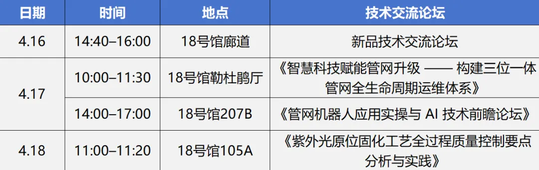 本次年会,博铭维技术将带来多款覆盖全场景的新一代管网智能装备矩阵,从市政主管到小区支管,从箱涵暗渠到供水管道,从可视化检测到在线智能监测,多维度破解“进不去、看不清、效率低、测不准、监不到”等行业痛点,为城市管网全生命周期安全运维带来全新体验。